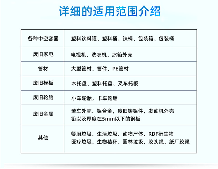 雙軸撕碎機-廣泛應用于塑料制品、廢舊塑料、木材、廢舊輪胎、廢舊金屬、廢舊家電等相關固廢利用領域。整機模塊化設計,根據不同物料特性及產能需求,配置相應的齒形結構、刀體排布、刀具材質及箱體尺寸。雙軸破碎機主要靠“剪和切"的原理來完成破碎固體廢棄物的過程。
